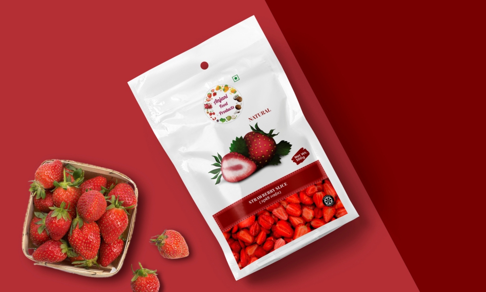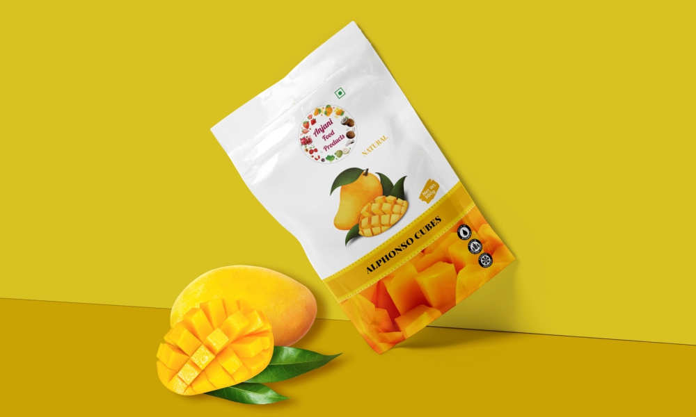 Packing design that will help accelerate the demand of an established frozen foods Company products. Stand up pouch design for frozen Alphonso aamras, shredded coconut, alphonso cubes, totapuri slice, Jamun, chikoo, Sitaphal. Strawberry, Litchi.
