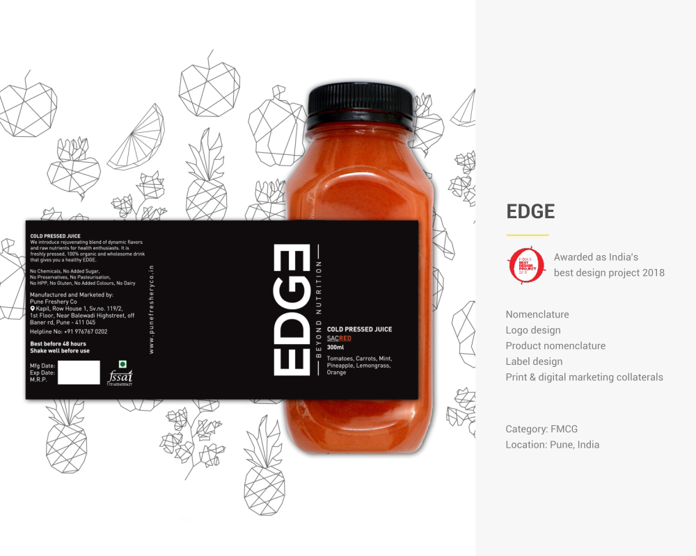 Creation of an impactful branding that helped realize the company’s edgy idea and successfully launch in the saturated ‘health’ market.