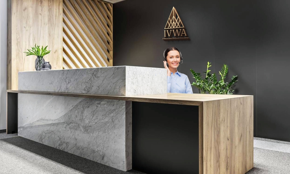 The logo was created using the company names I, V, W, and A and was constructed in such a way that the triangular shape conveyed credibility, trust, and stability.