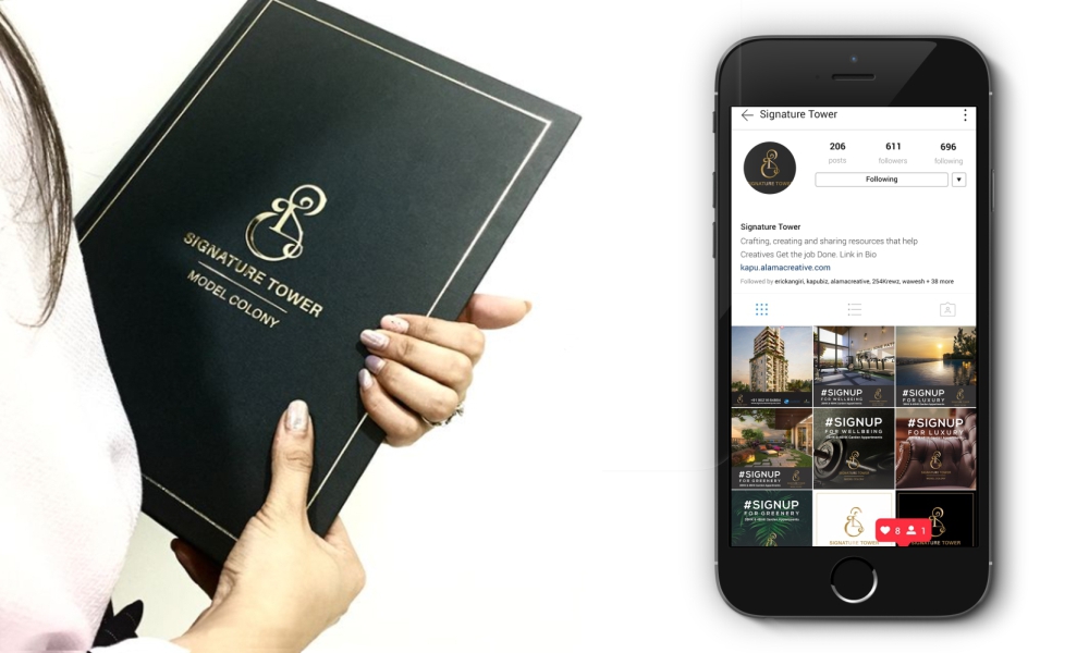 Thread new ground in the design of a brochure that has never been attempted before. Allow the Marketing materials to inspire a sense of luxury. Let interested clients sign up for luxury, sign up for greenery, and sign up for signature tower in this age of the Internet, where taking a confirmed decision means signing up.